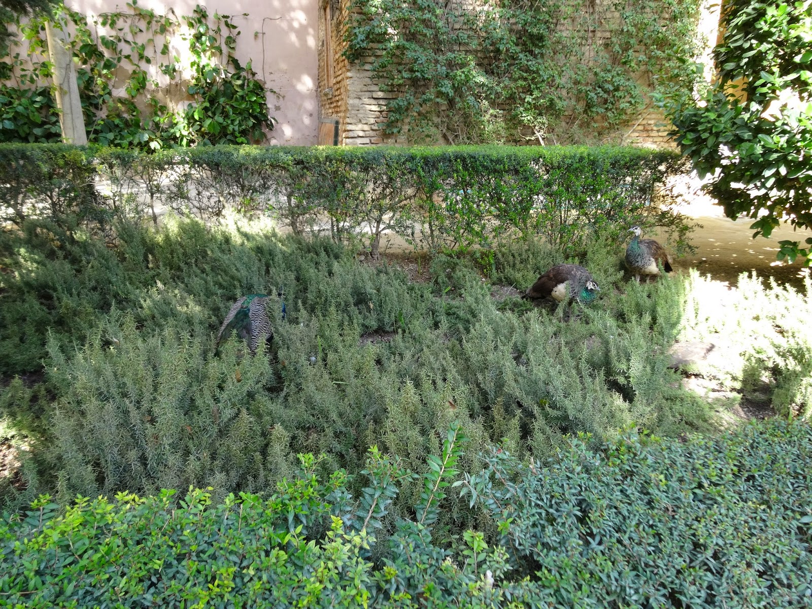 Vimos também Pavões a passear livremente pelos jardins.