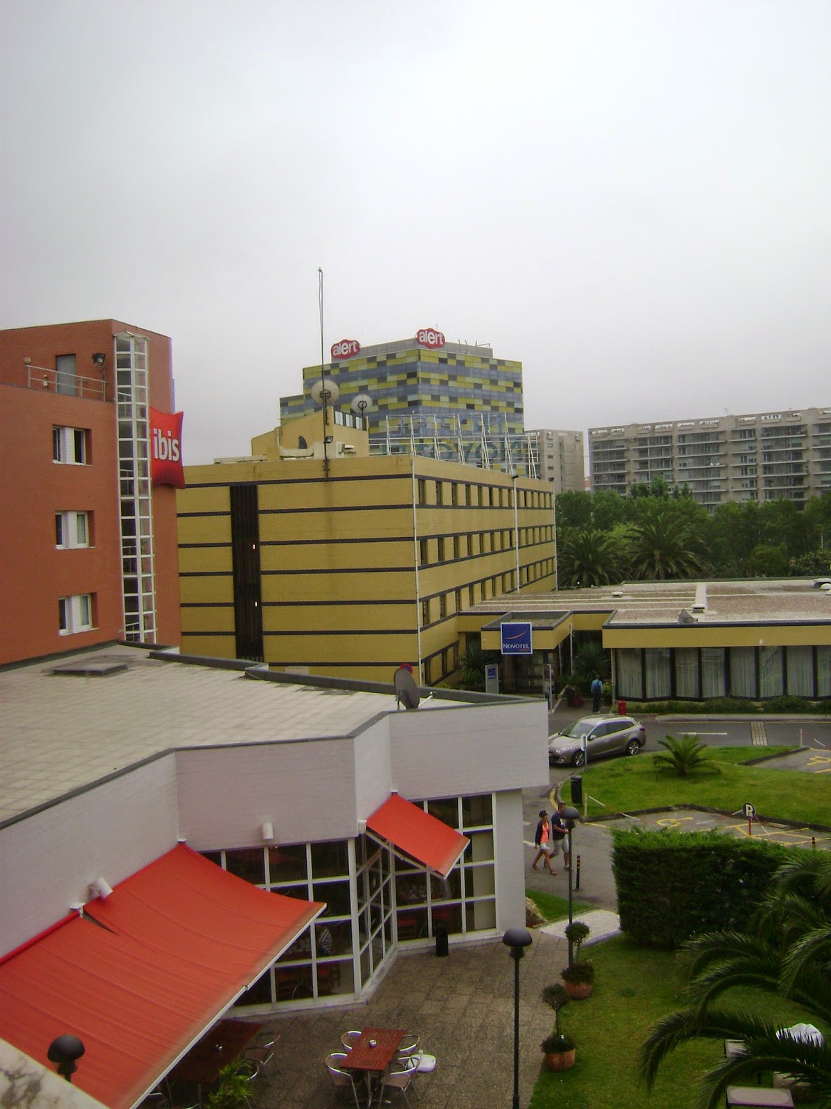 Desta vez não tivemos vista para a ponte da Arrábida, no primeiro quarto tivemos vista para o parque de estacionamento e para o novo hotel Ibis Budget. No segundo quarto tivemos vista para a frente do hotel e para o hotel Novotel.