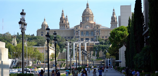 Desse modo, seguimos pela “Avinguda de la Reina Maria Cristina”, onde apreciamos o belo edifício do “Museu Nacional D’ Art de Catalunya” (MNAC).
