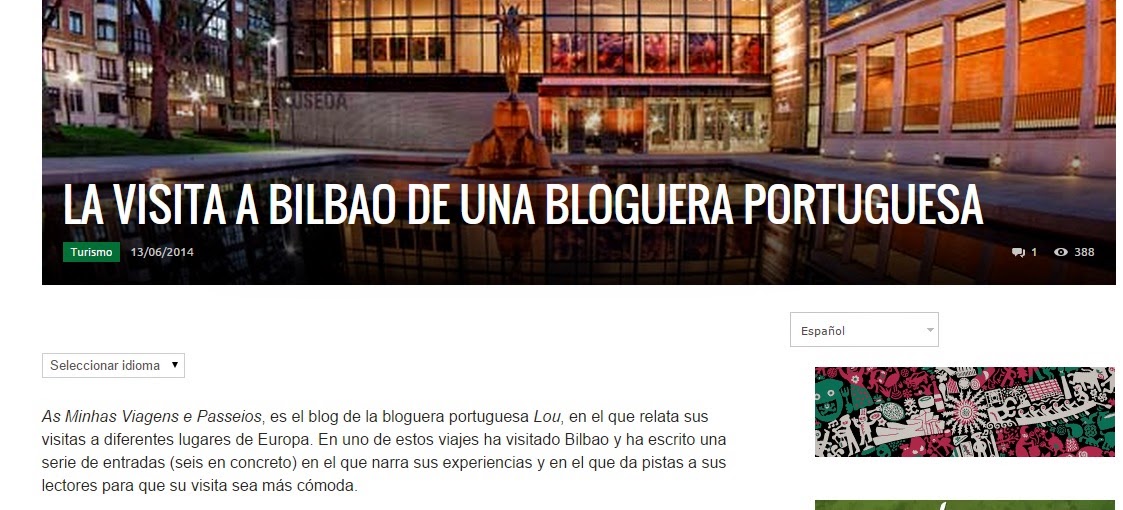 Fiquei muito feliz ao saber que o meu blog: “As minhas Viagens e Passeios” foi indicado no site About Basque Country, no seguimento dos meus posts sobre Bilbao.