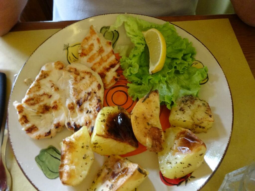O restaurante ficava mesmo ao lado do nosso hotel e tinha menus ótimos ao almoço, com primeiro prato, segundo prato e bebida.