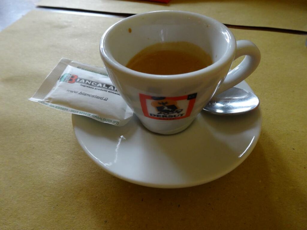 No final, tomei um café que custou 1,2 €, adicionada à conta 3 € de Coperto, uma taxa utilizada em Itália, sendo supostamente para pagar o uso da loiça e mesa.