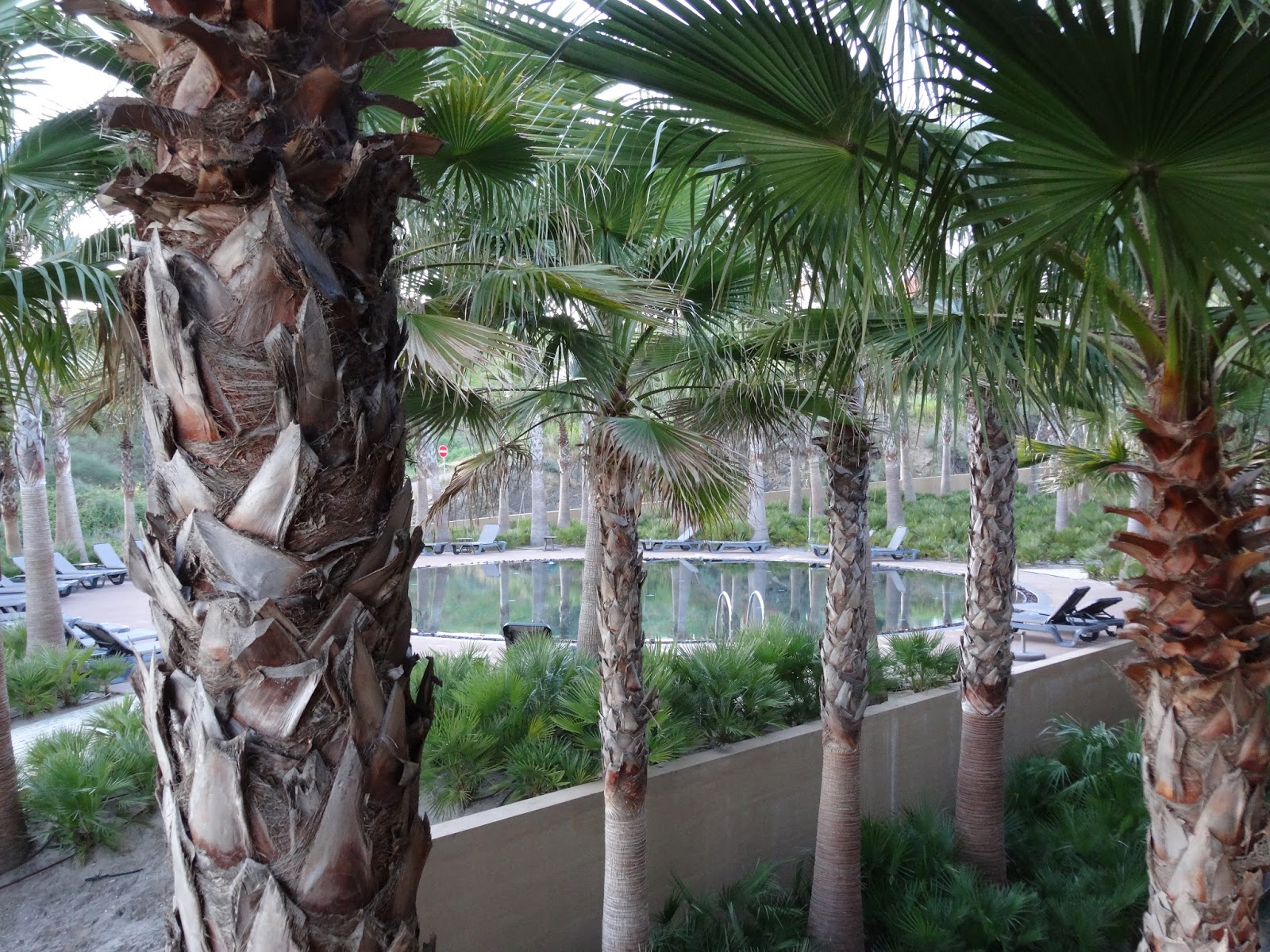 A vista geral é para a barragem de Montargil, no entanto, a nossa vista foi para uma das piscinas e para o tronco das palmeiras.