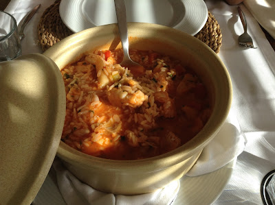 Escolhemos as entradas Café Praia (3 a escolha de uma lista de 5), pão caseiro e para principal um arroz de peixes, que estava ótimo.
