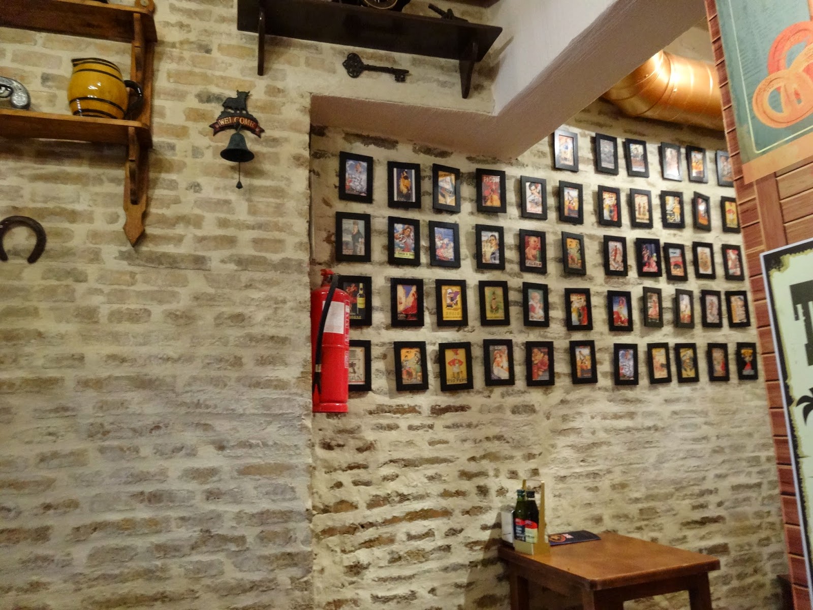 O restaurante tinha uma decoração muito particular, pois estava decorado com pequenos quadros, cartazes antigos e peças da vida quotidiana antiga exposta em prateleiras.